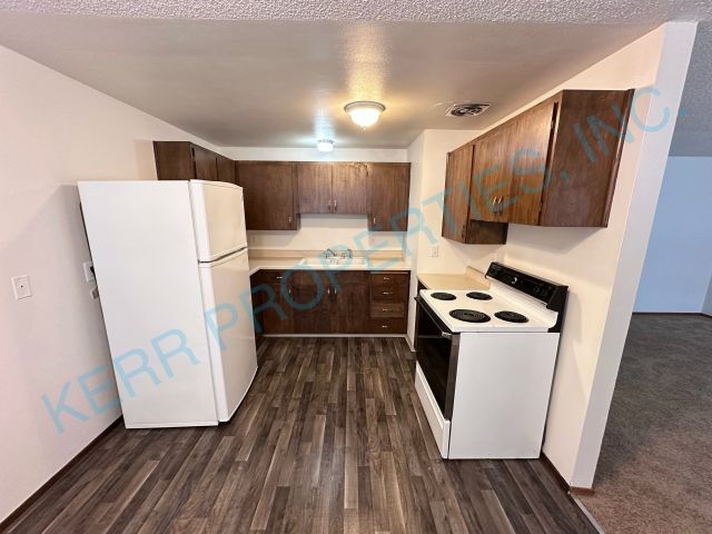 DON’T MISS OUT ON THIS CHARMING 3 BEDROOM PLEX! This single-level unit features 3 carpeted bedrooms, including one with a walk-in closet. There is 1 full bathroom with linoleum flooring. The living room is carpeted, and the kitchen with dinette has LSV flooring, a 2-door fridge, and an electric range. The laundry room includes washer and dryer and has linoleum flooring. The unit is heated with electric ceiling and wall heaters, and has an electric water heater. A storage unit is available in the outbuilding. Parking includes 1 off-street space. NO SMOKING ON PREMISES! TENANTS WILL BE CHARGED $27.56 MONTHLY FOR GARBAGE. Additional security deposit: $500 per pet. Pet rent: $55.00 a month per pet. TENANTS WILL BE BILLED SEPARATELY FOR WATER AND SEWER. TENANTS WILL BE BILLED MONTHLY FOR SHARED ELECTRICITY. YARD CARE INCLUDED!